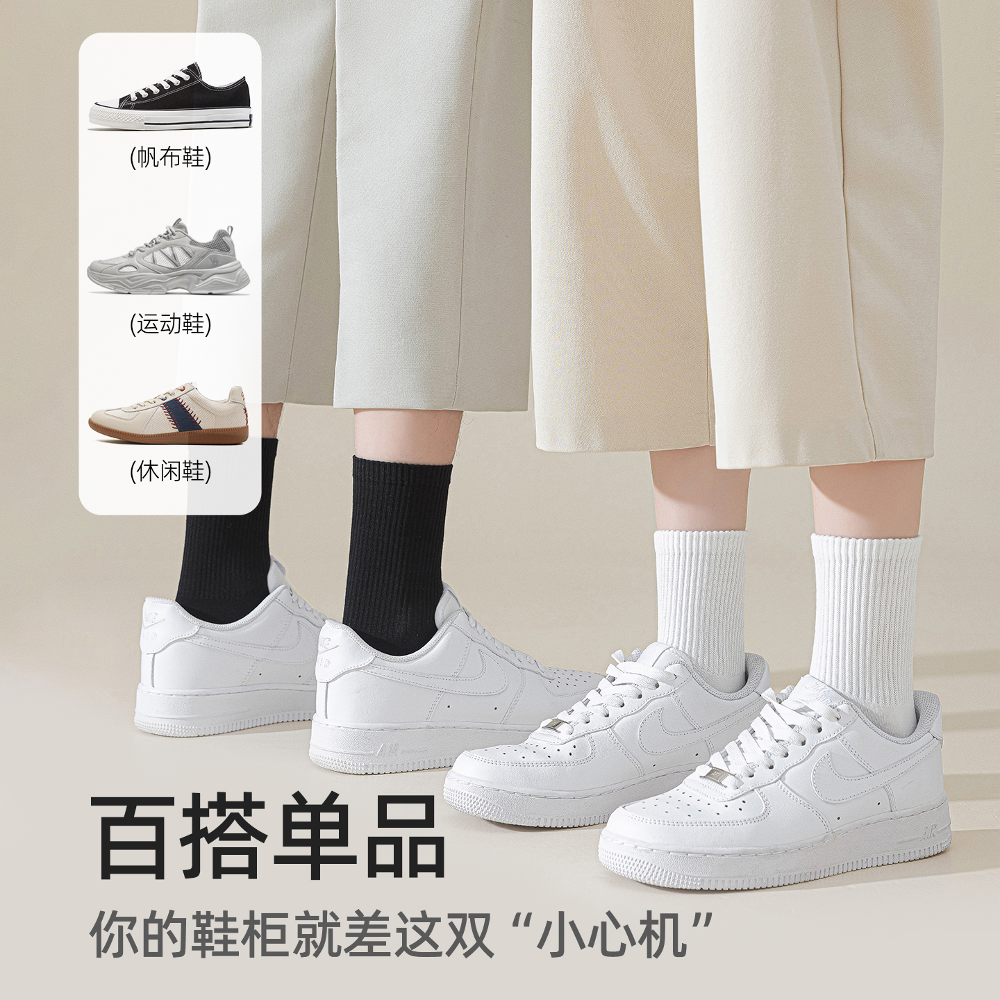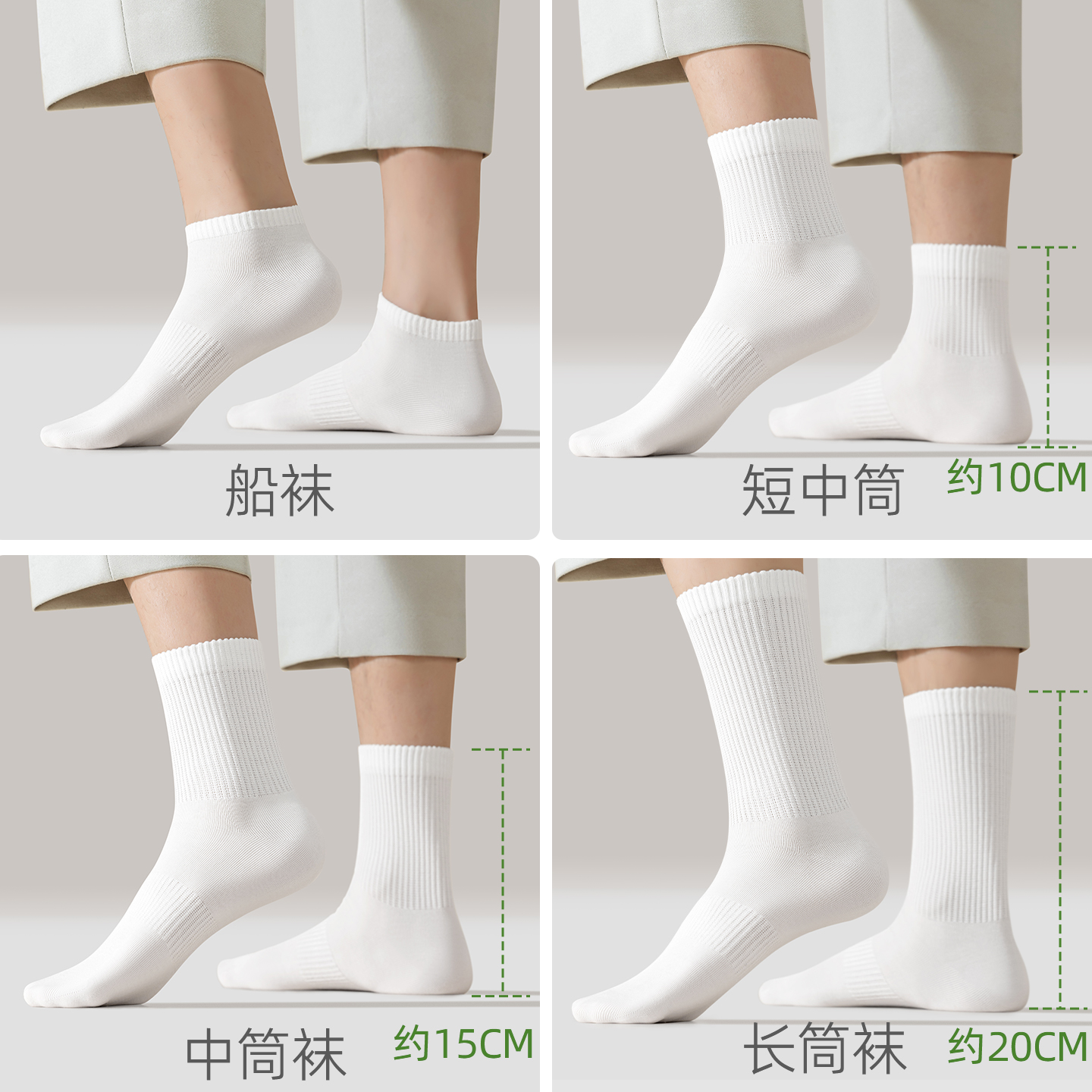 袜子男纯棉中筒袜男士 白色抗菌防臭春秋透气运动纯色无骨袜 夏季