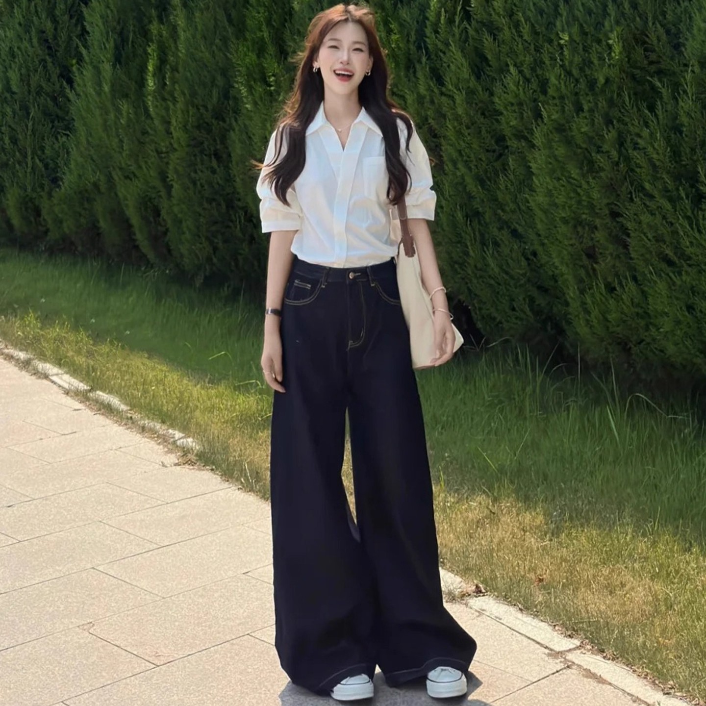 百搭垂感高腰显瘦拖地长裤 KRO原牛色九分直筒牛仔裤 女2025新款