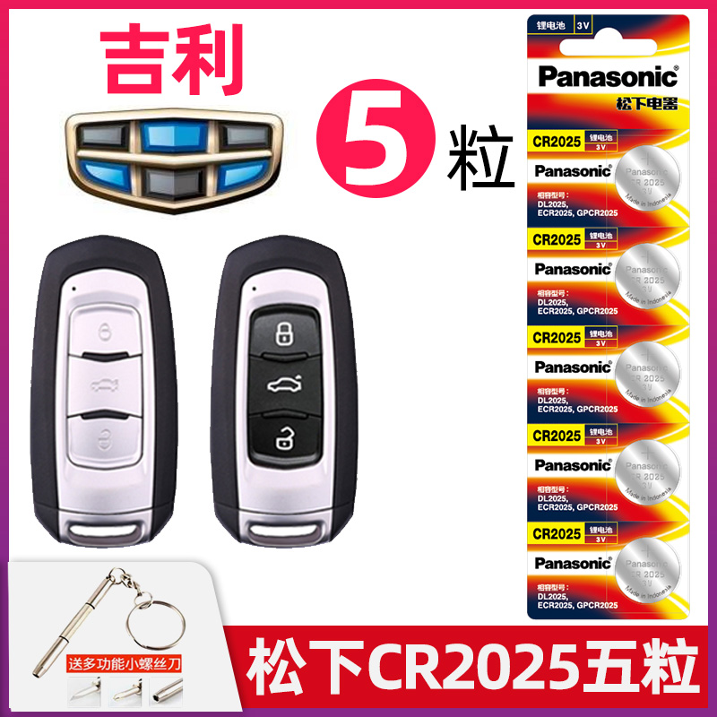 18款 CR2032电子 适用于吉利钥匙电池5粒新帝豪百万款 汽车遥控器纽扣松下CR2025 博瑞博越远景GS14