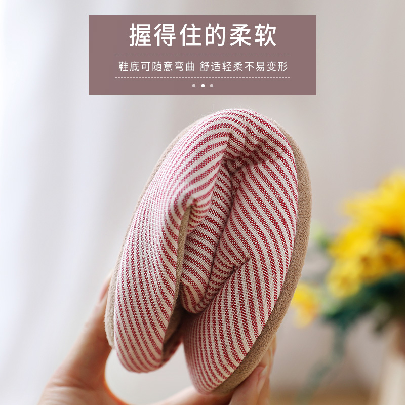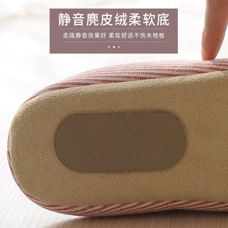 冬 男女士情侣室内木地板布底静音居家棉拖鞋 日式 秋冬软底家居拖鞋