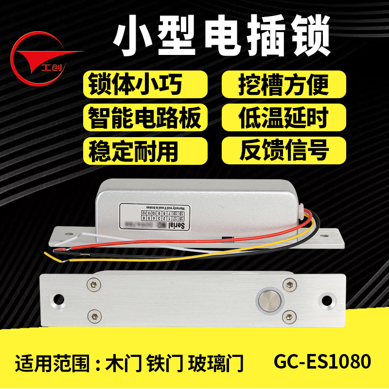 工创 电控插销锁 12V24V小型门禁电插锁小尺寸电控锁延时四芯电锁