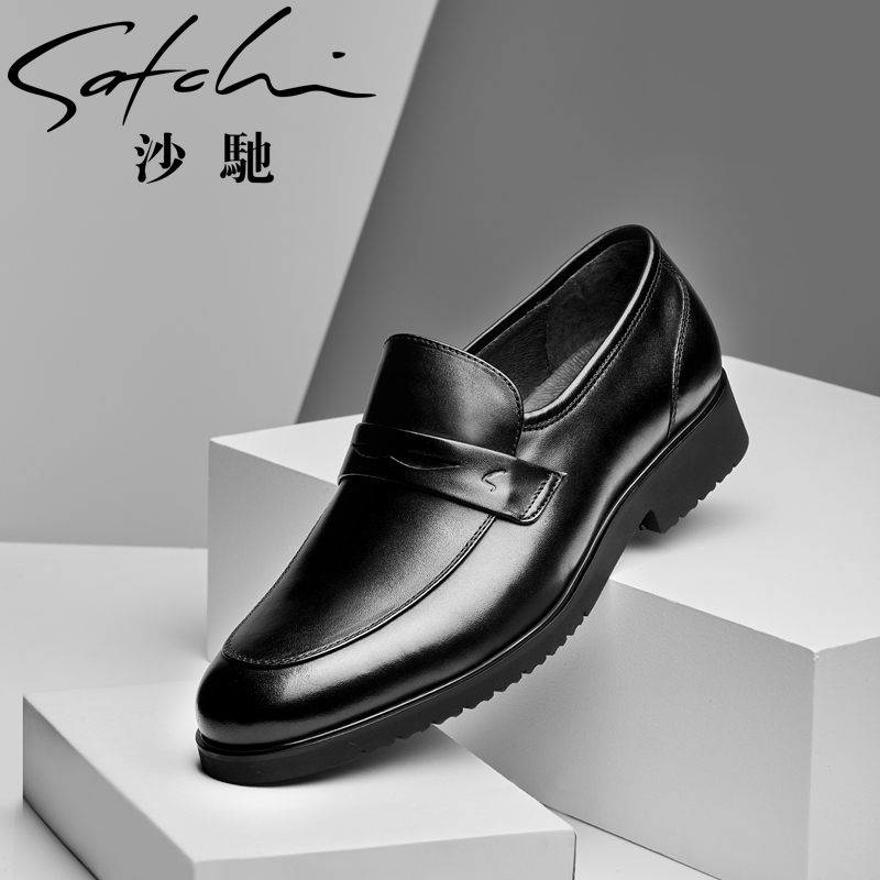 新款 一脚蹬真皮乐福鞋 软底透气英伦商务正装 休闲皮鞋 男士 沙驰男鞋