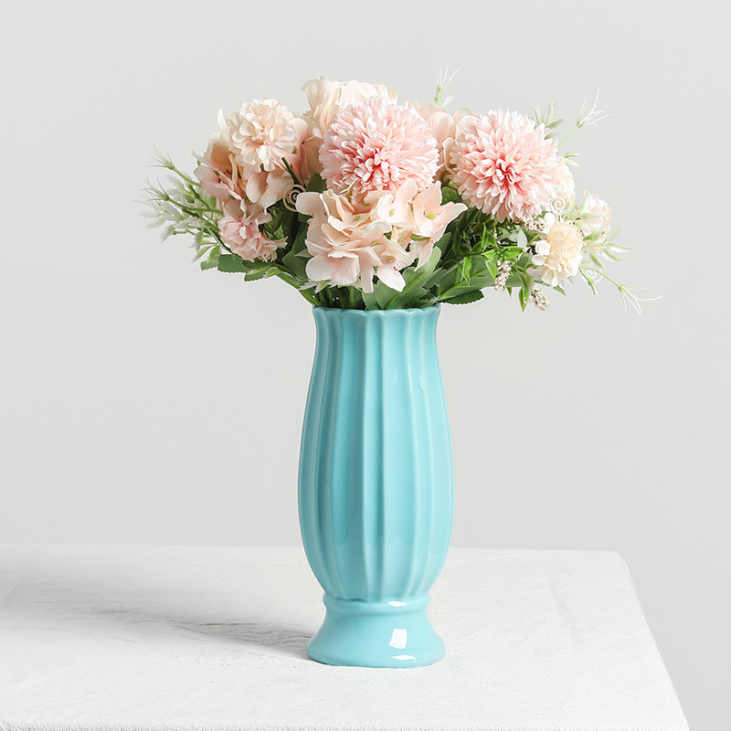 欧式 饰摆件 玫瑰插花花瓶白色简约陶瓷花器客厅餐桌干花鲜花水培装