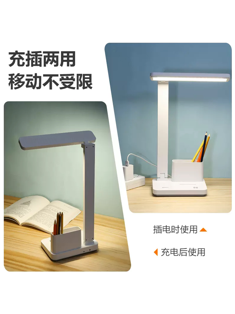 康铭led桌面台灯书桌学生宿舍可充电学习卧室床头灯阅读充插两用