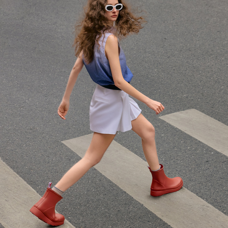 涉水鞋 户外露营酷玩雨靴厚底防水防滑矮筒短靴胶鞋 女鞋 HUNTER雨鞋