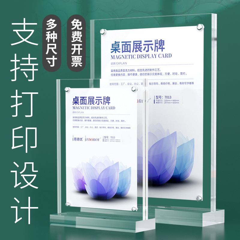 A4展示牌亚克力T型底座托台卡架A5立牌台牌强磁台签A6桌牌双面桌面产品广告牌执照证书展示菜单价格目表餐牌