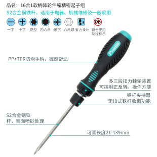 9816 宝工SD 16合1软柄伸缩棘轮精密起子组可换头 螺丝批组起子组