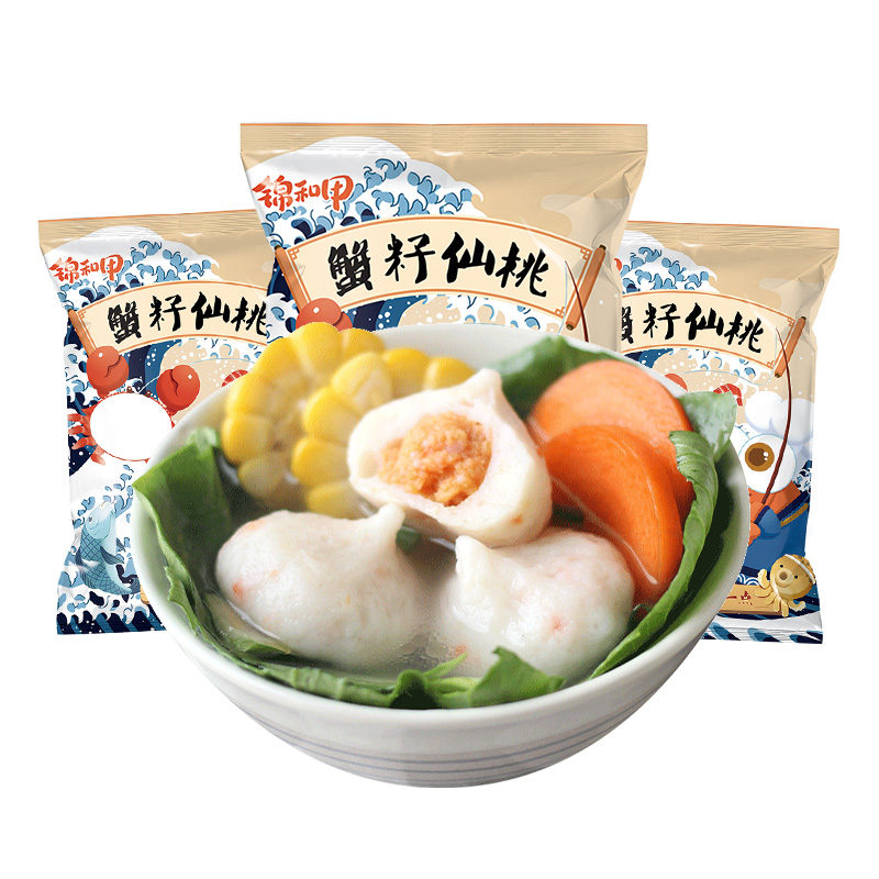 锦和甲蟹籽仙桃250g 3袋新鲜食材手工制作火锅丸子烧烤关东煮食材