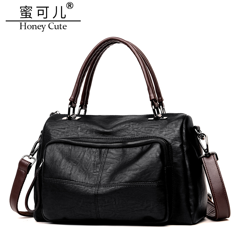 软皮复古手提包女2024新款 大气波士顿简约百搭休闲单肩斜挎包 韩版