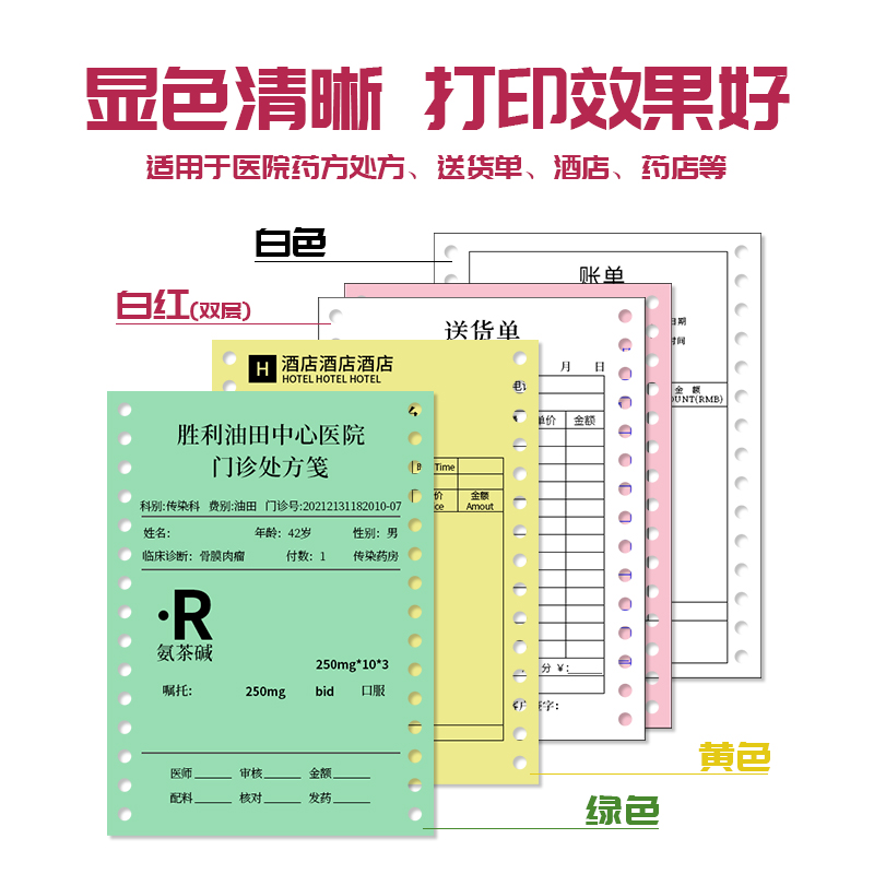樱花针式 白红黄绿色可选 电脑打印纸140x190一联二联开药店方凭证纸医院用70g无碳处方纸15孔双拼2000页