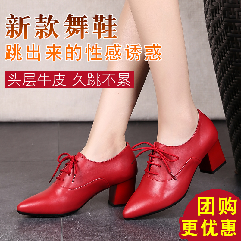 四季 自然牛新款 软底高跟交谊摩登跳舞鞋 女成人舞蹈鞋 真皮拉丁舞鞋
