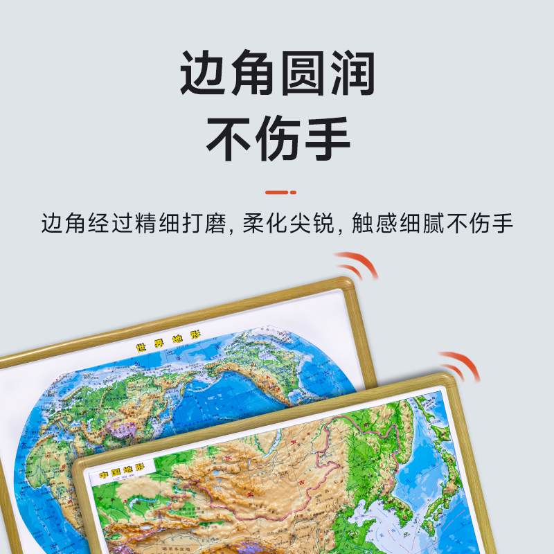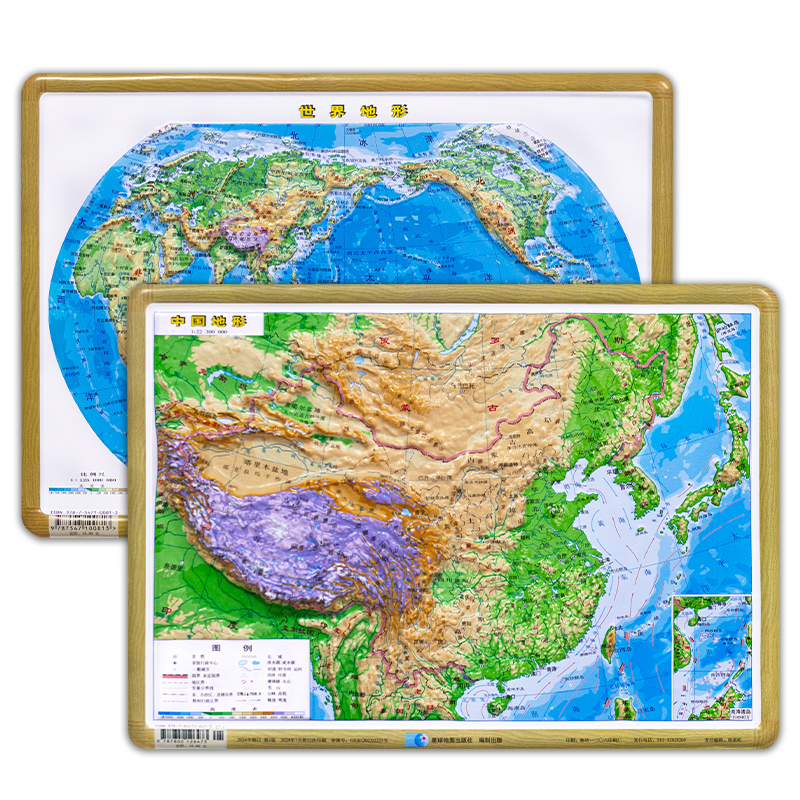 套装 16开小号地图 3d凹凸立体地形图 29cm 装 21cm 中国地图 世界地图 共2张 饰学生学习直观展示地理三维地貌地形 迷你3D立体版