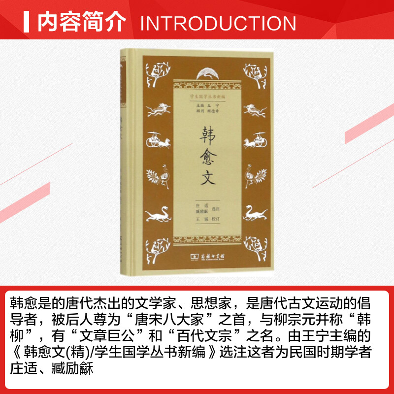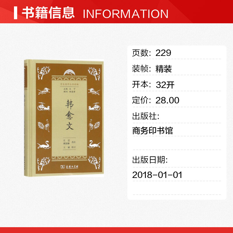 选注;王诚 校订;王宁 图书籍 庄适 商务印书馆 新华书店正版 臧励龢 中国古诗词文学 韩愈文 丛书主编