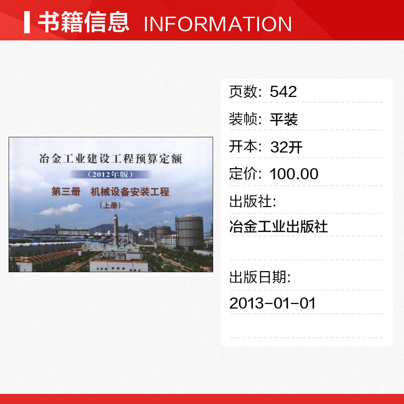 工程 上册 著 2012年版 冶金工业专业科技 著作 第3册.机械设备安装 编 冶金工业建设工程预算定额 本书编委会