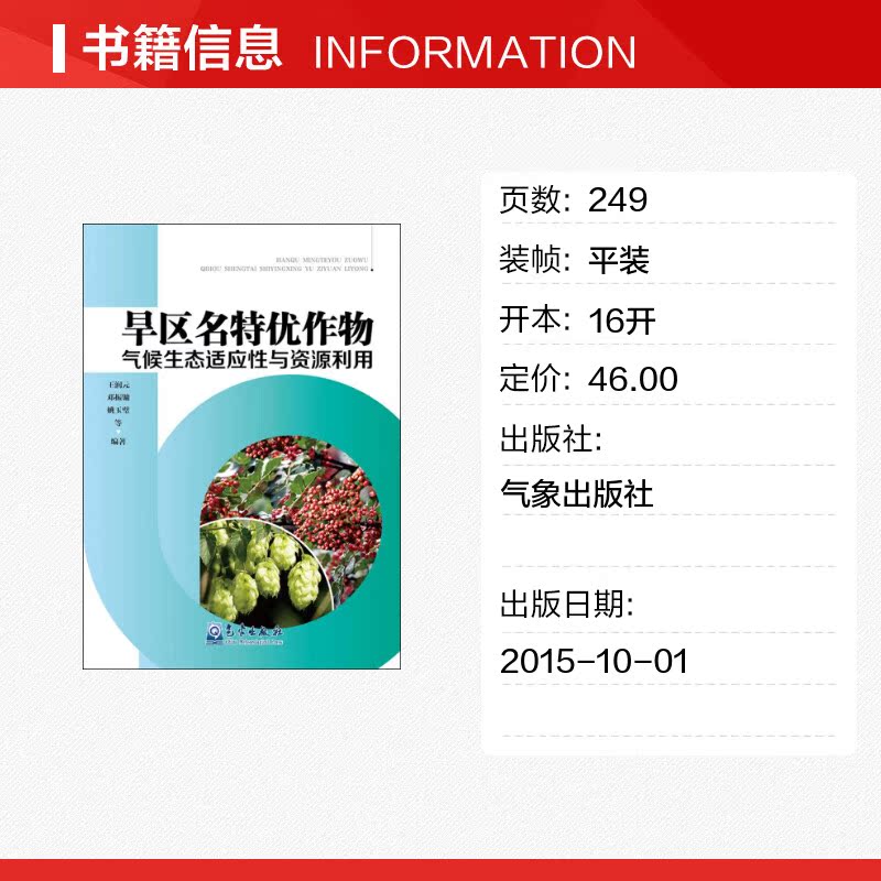 地震专业科技 社 等 气象出版 图书籍 新华书店正版 编 著 编著 王润元 旱区名特优作物气候生态适应性与资源利用