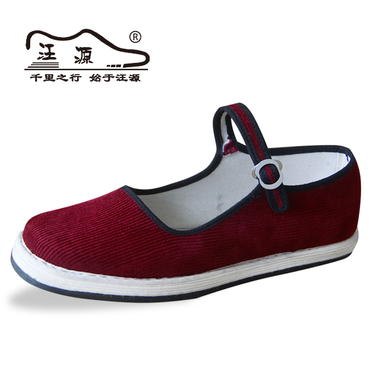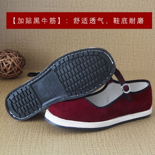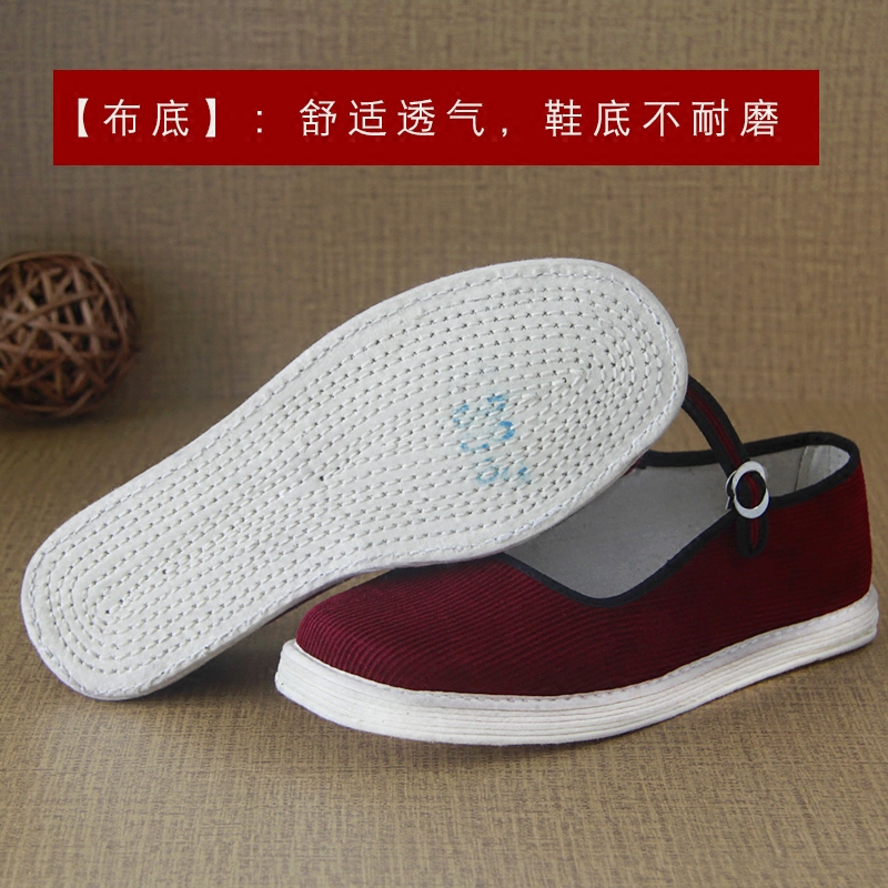 搭扣妈妈鞋 女百搭布底布鞋 春季 酒红条绒鞋 女透气 小单鞋 千层底女鞋