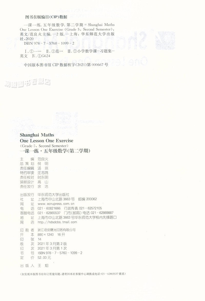 Grade5 五年级第二学期 Lesson 华东师大一课一练数学英文版 Second 英译版 Maths 5年级下 Shanghai One Semester Exercise