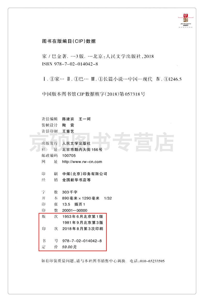 激流三部曲之一 现代文学家巴金小说文集作品集 家 书家春秋小说原版 形象诠释巴金 高中 社 人民文学出版 巴金 包邮