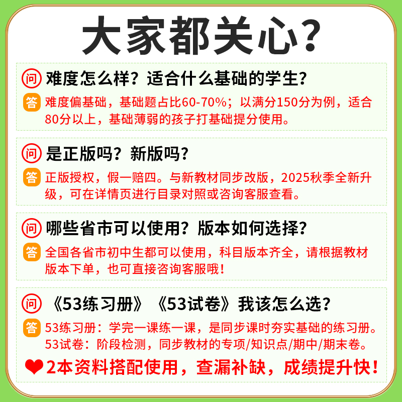 2025秋53五年中考三年模拟七年级上册数学同步练习册初一上册语文英语政治历史地理生物全套人教版 初中7下教材刷题必天天练5年3年