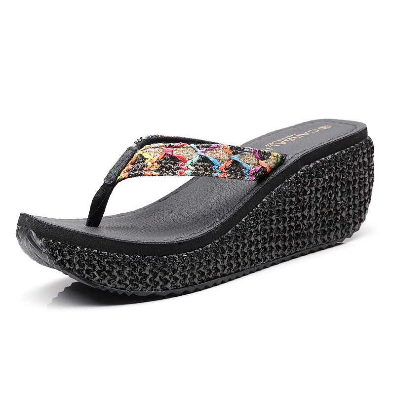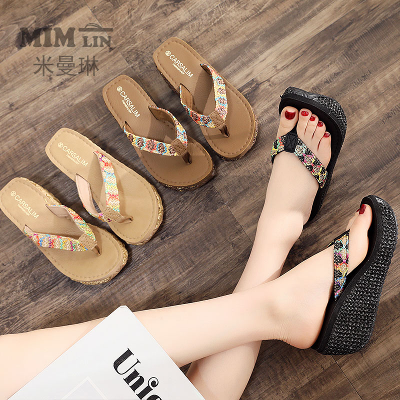 2019新款 女夏外穿防滑凉拖坡跟夹脚人字拖 可下水海边度假沙滩鞋