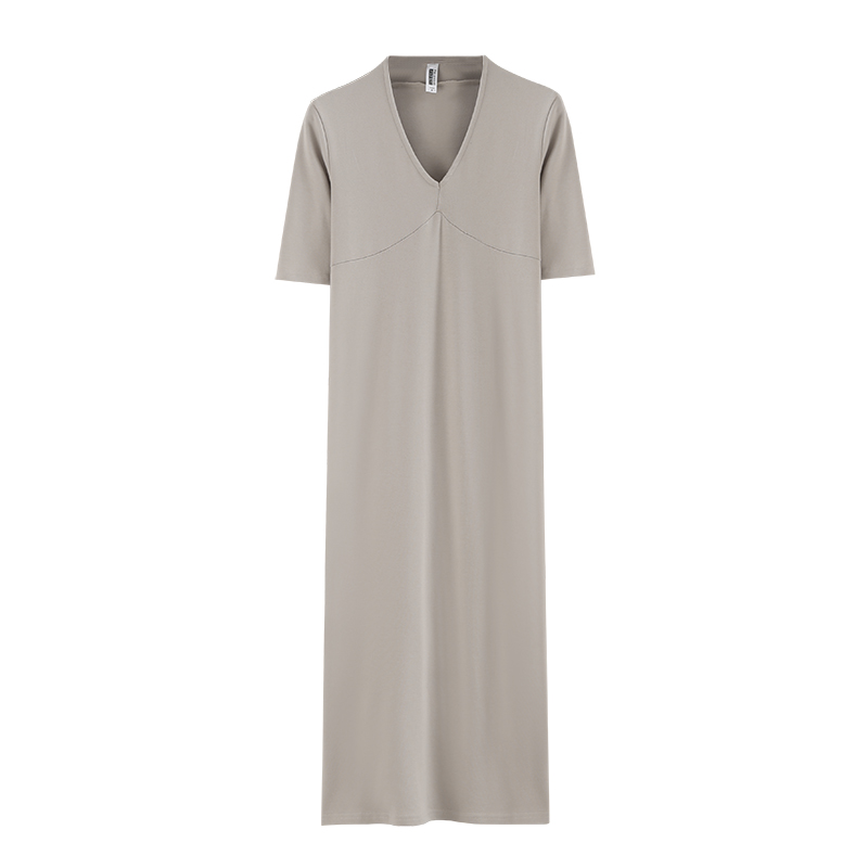 T恤裙纯棉过膝打底连衣裙体恤裙女 内搭加长款 春夏秋季 小深V领中袖