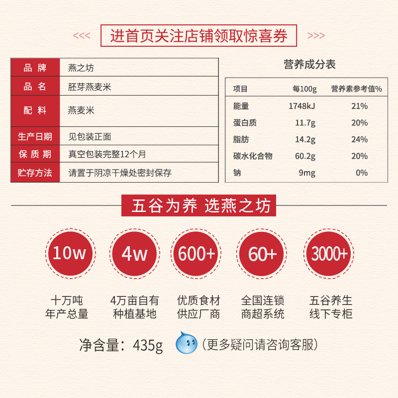 燕之坊燕麦仁量贩装 心意燕麦米五谷杂粮粗粮食品农家粮食435g