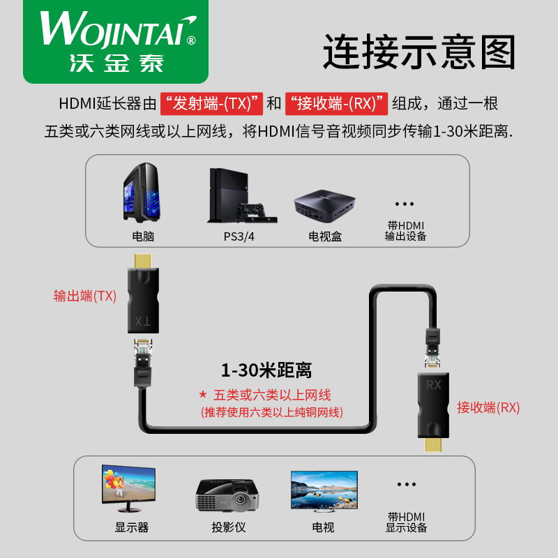 hdmi转RJ45网线 hdmi单网线30M网络延长器 沃金泰 HDMI延长器30米