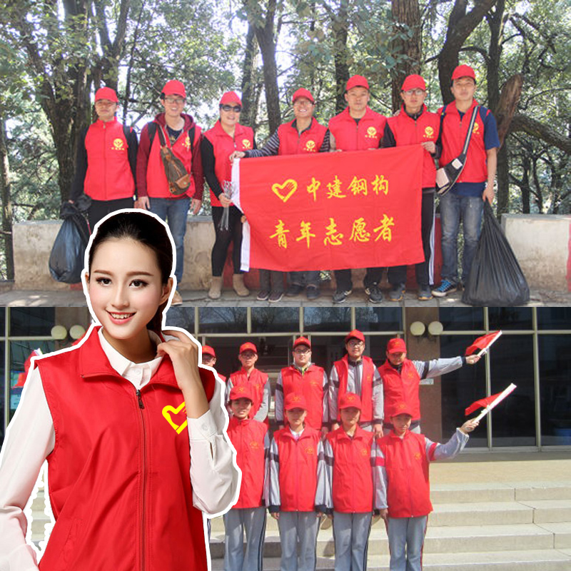 志愿者马甲定制党员义工红色背心超市文化广告衫 印字logo 工作服装