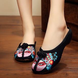 民族风绣花鞋 老北京布鞋 平底软底透气凉鞋 包头拼色拖鞋 女春夏新款