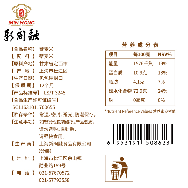 新闽融品五谷藜麦米435g 甘肃定西白藜麦米宝宝代餐粥米粗粮饱腹