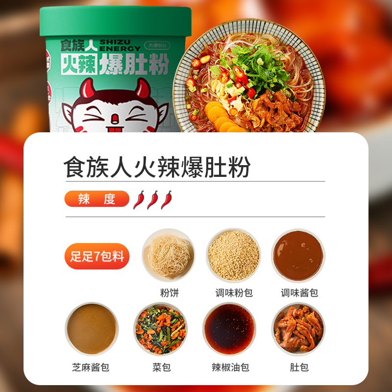 食族人酸辣粉桶装 食人族爆肚粉花甲粉红薯粉丝懒人夜宵冲泡速食品
