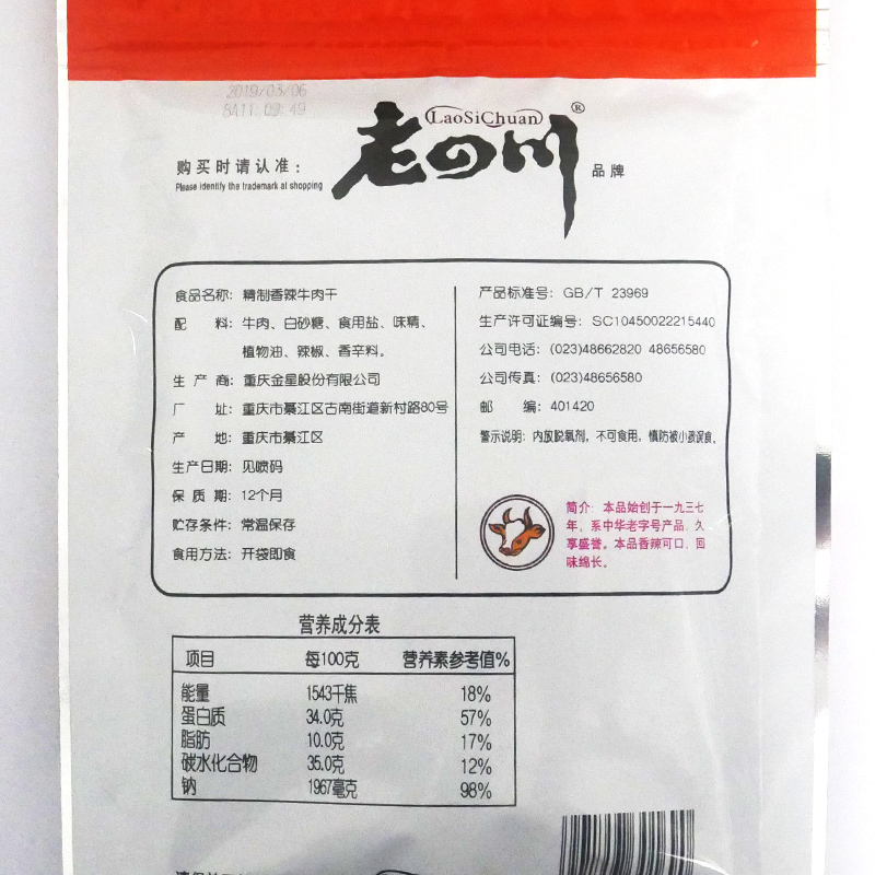 老四川 精制香辣牛肉干135g金角重庆四川特产美味麻辣零食小吃