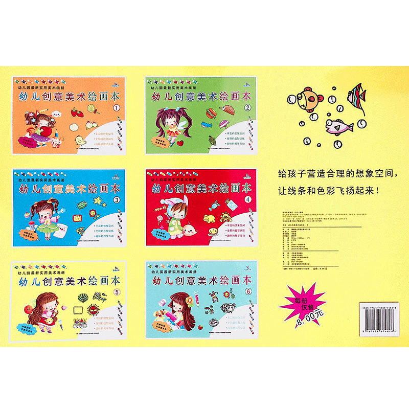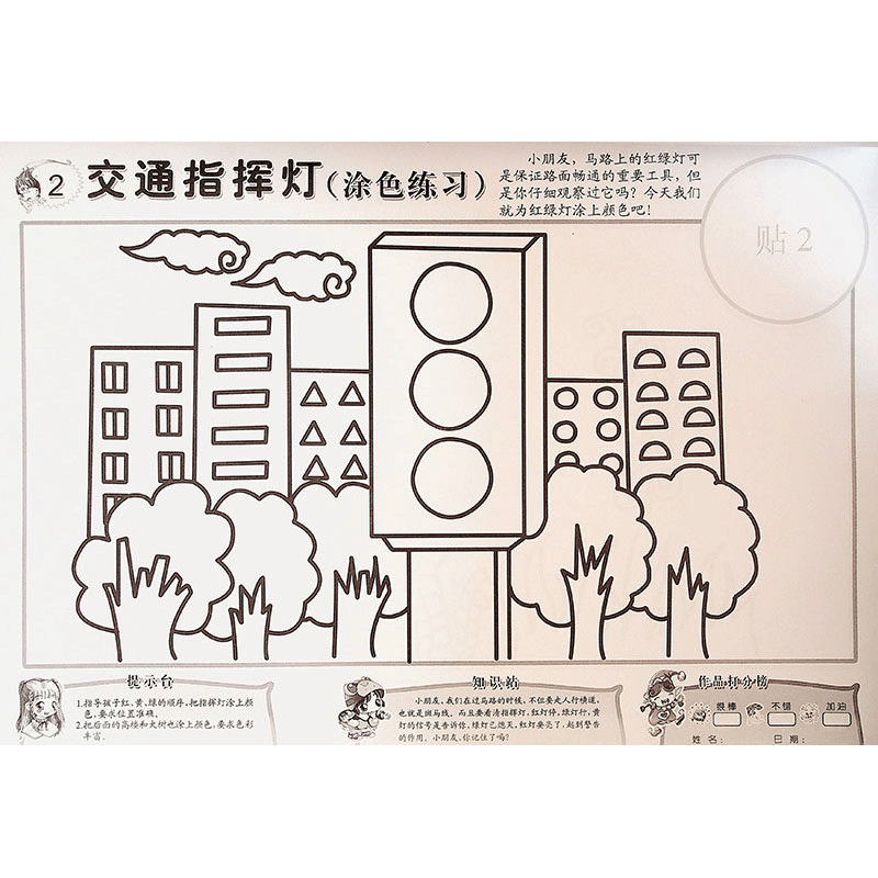 丰富 6岁儿童专享 想象空间全新 益智训练趣味 内送贴纸可参照涂色 幼儿园新实用美术画册幼儿创意美术绘画本5 教学互动