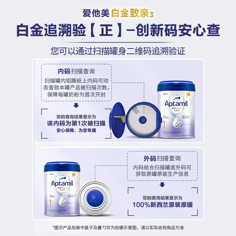 6月900g单罐 1段0 爱他美白金香港致亲白金升级版 奶粉