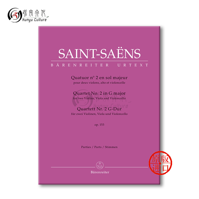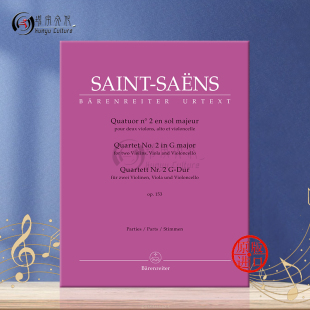 两支小提琴 乐谱书 第二弦乐四重奏 分谱 BA10928 圣桑 中提琴和大提琴 G大调op153 Saens Saint 骑熊士原版 major Quartet