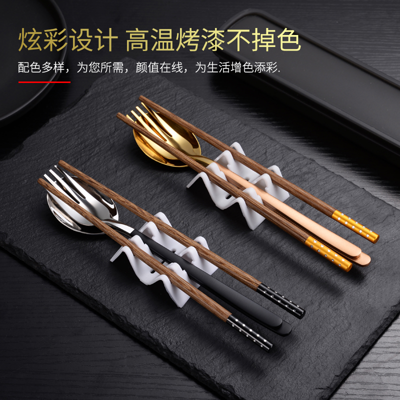木质筷子勺子套装 收纳餐具盒 316不锈钢学生便携304钢勺叉三件套装