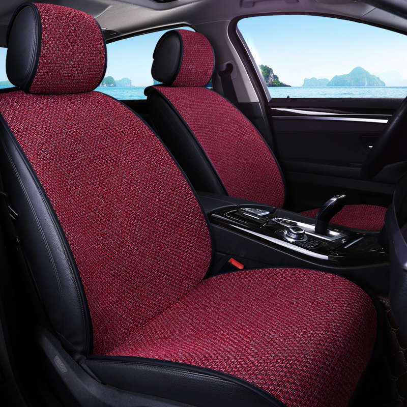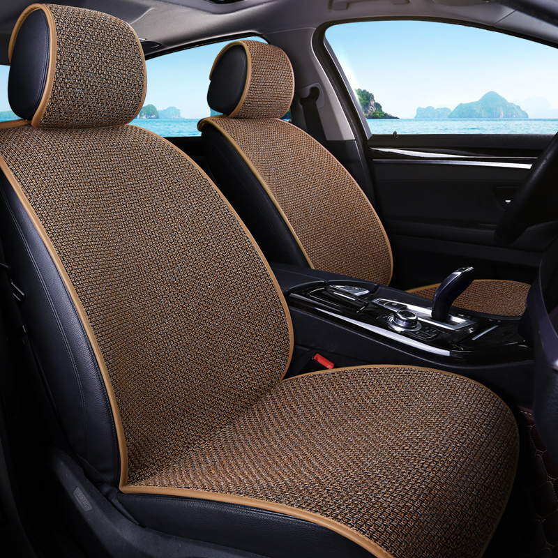 超薄汽车坐垫四季 通用半包亚麻车用座椅垫免绑防滑通风透气春夏