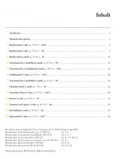 Klavier HN1801 在钢琴边 Mendelssohn Bartholdy 德文版 13首知名原创作品 钢琴独奏带指法 13bekannte 亨乐原版 门德尔松