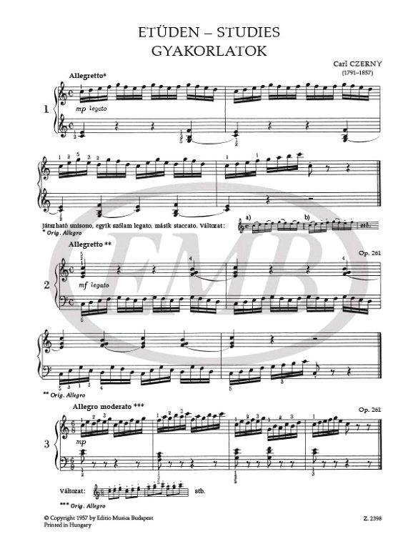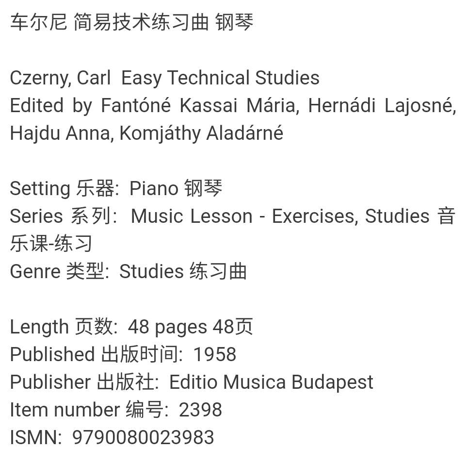 布达佩斯 Z2398 Piano Easy 初级技巧练习曲 钢琴独奏 Technical 进口乐谱书 原版 for 车尔尼 Czerny Studies Carl