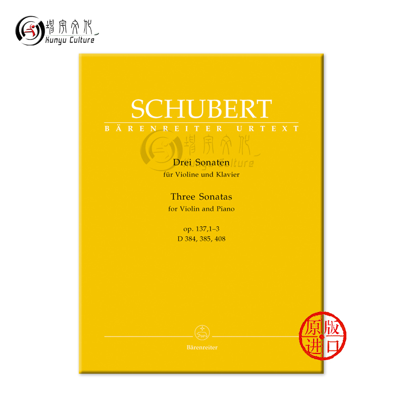 Violin 408 385 舒伯特三首小提琴奏鸣曲Op137 乐谱书 for and Sonatas D384 Three Schubert BA5606 Piano 附钢伴骑熊士原版 No1