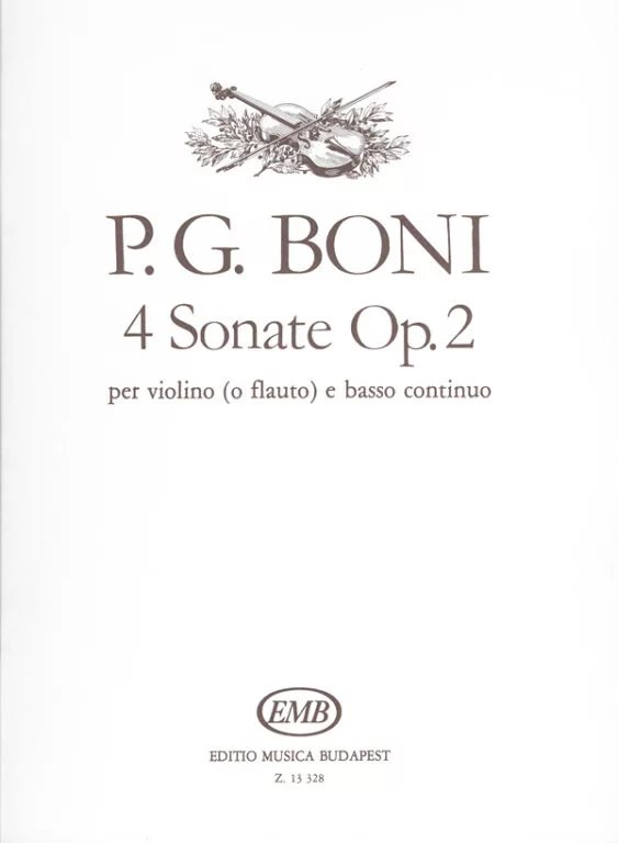 布达佩斯原版 四首奏鸣曲 小提琴或长笛和低音通奏 basso Z13328 加埃塔诺堡尼 乐谱 op2 per Sonate Boni continuo violino