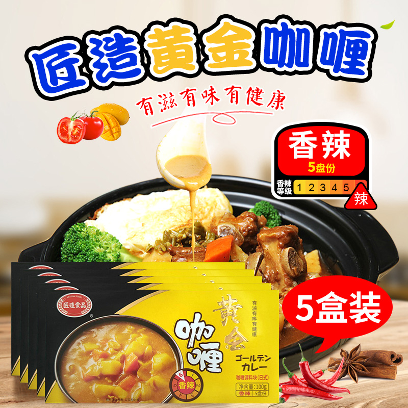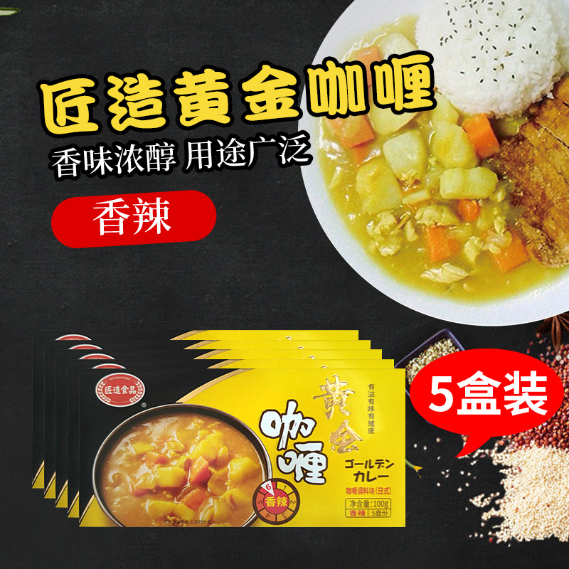 日式 5家用牛肉鸡肉咖喱饭调料 匠造黄金咖喱块香辣咖喱酱膏100g