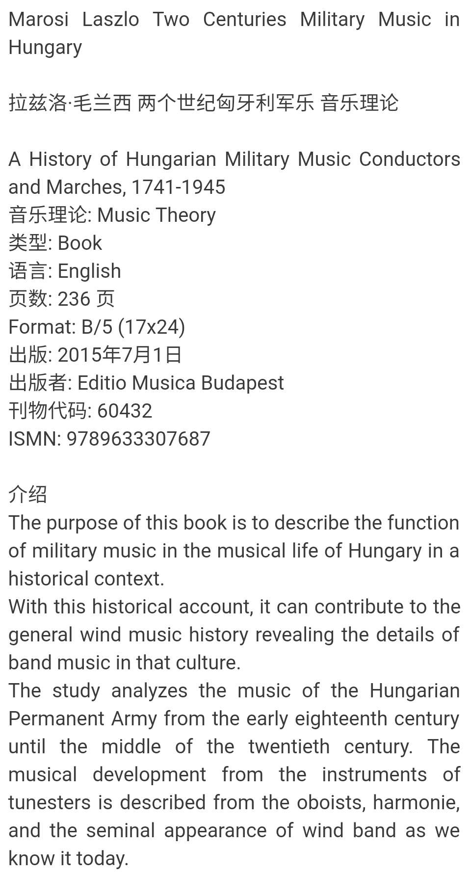 乐谱书 Two 两个世纪匈牙利军乐 布达佩斯原版 Hungary 60432 毛兰西 Marosi 音乐理论 Military Centuries Laszlo Music