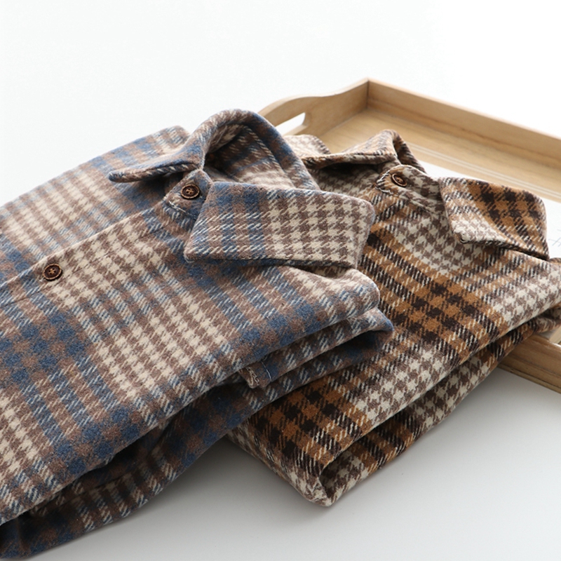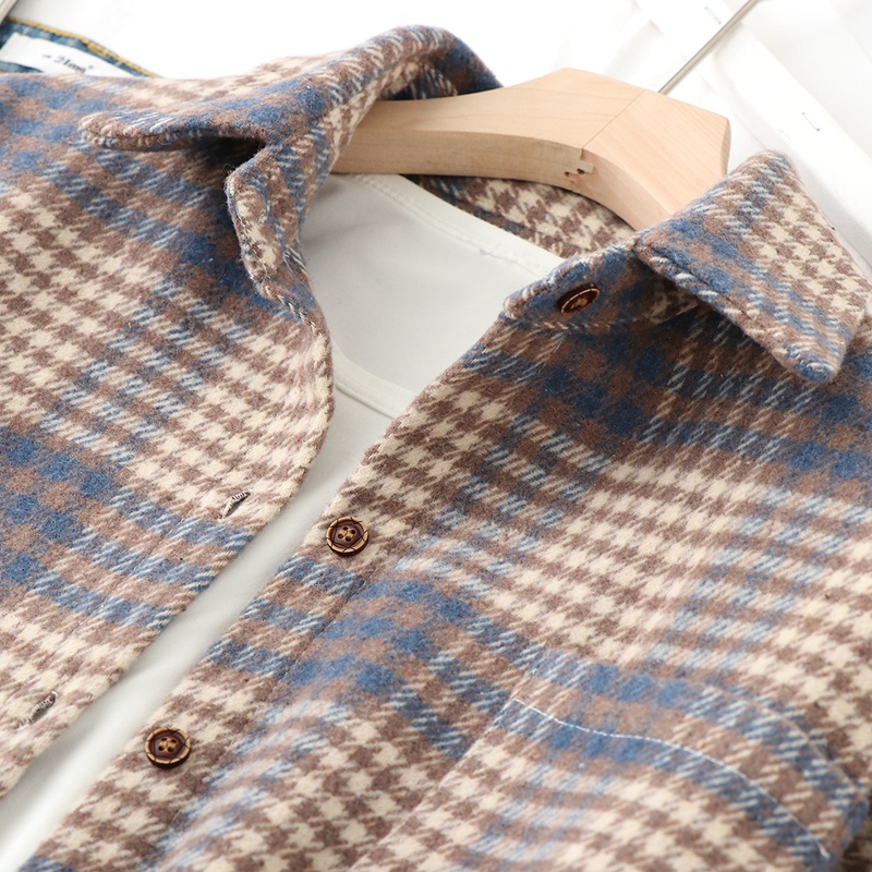 打底衬衣 格子衬衫 秋冬款 港味复古文艺加厚磨毛宽松毛呢外套女长袖