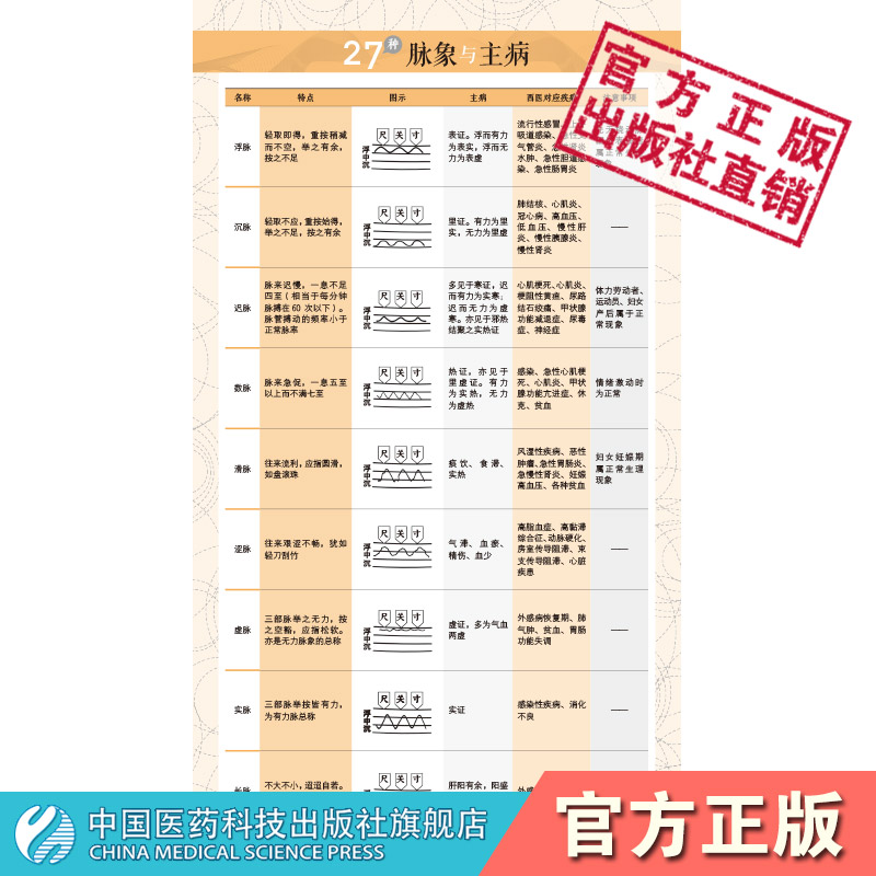 便携式 脉诊速记图册以图示脉中医脉诊速记图卡27脉象主病李时珍濒湖脉学脉象融合现代脉象研究脉象图谱彩色图解自学诊断脉诊一学通