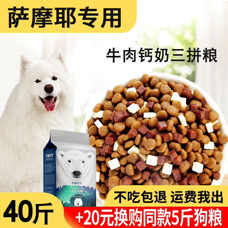 狗粮20kg40斤萨摩耶专用幼犬成犬中大型犬通用白色狗粮天然粮