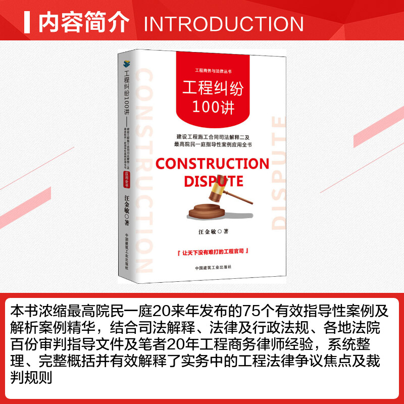 中国建筑工业出版 汪金敏 社 建设工程施工合同司法解释二及最高院民一庭指导性案例应用全书 工程纠纷100讲