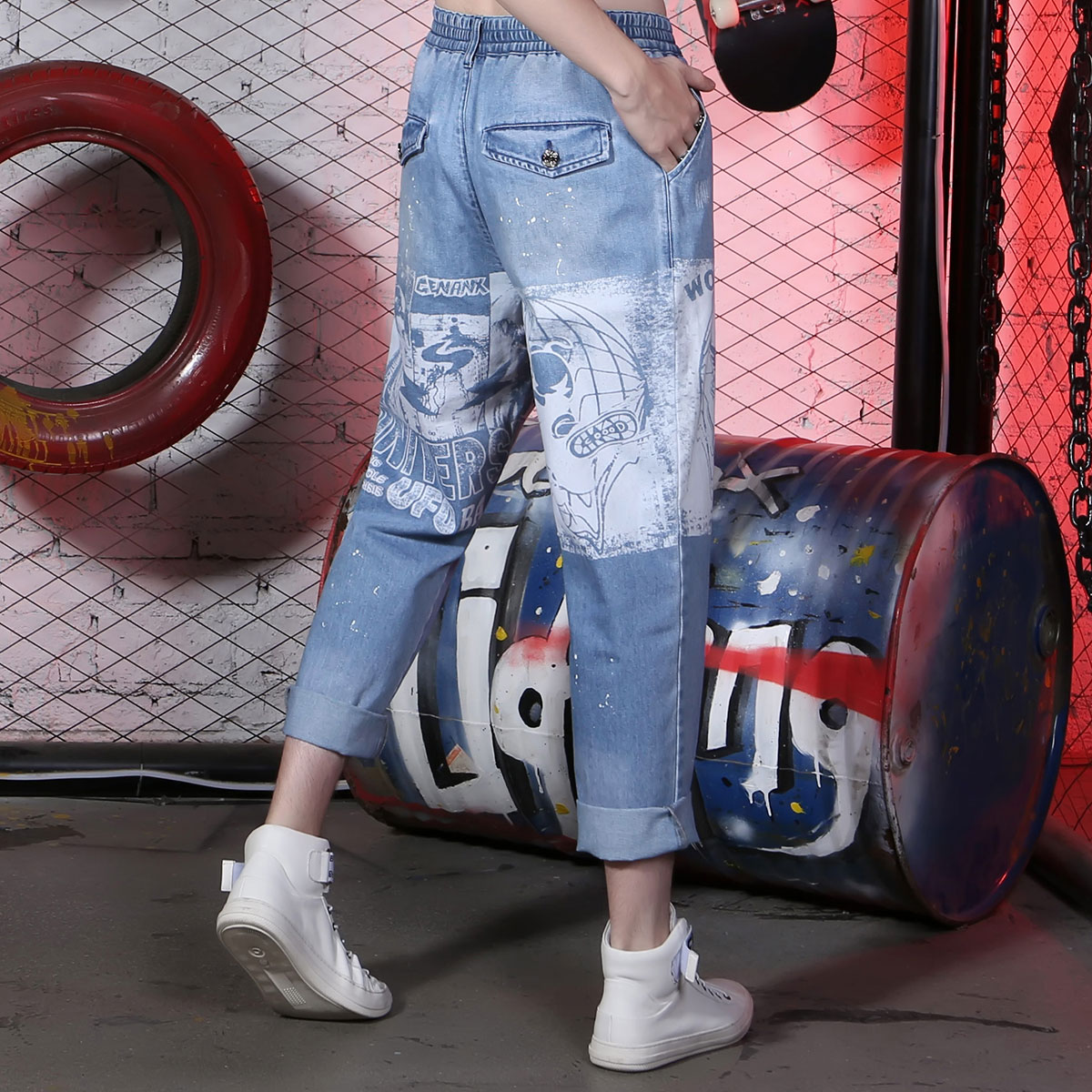 女士时尚 Hazzys哈吉斯宽松牛仔弯刀裤 甄选 通勤蓝色休闲裤 秋季