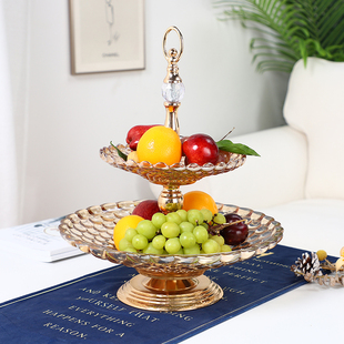 果盘客厅茶几家用轻奢高档大水晶玻璃双层零食摆放水果盘2025新款