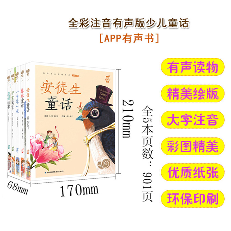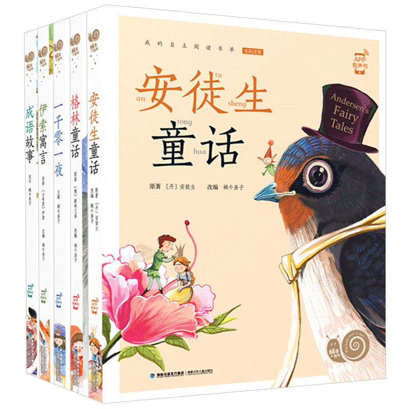 睡前故事大字彩图注音版 格林安徒生童话成语故事伊索寓言一千零一夜蜗牛小书坊有声书5册 童话故事 8岁经典 低年级小学生独立阅读